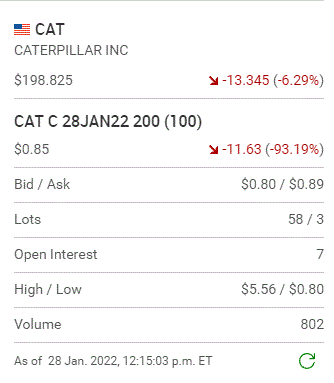 Here now is how Caterpillar closed the day. I now have a week now for it to rebound.